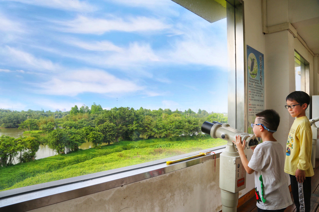 除了可以乘坐小船近距离观察小鸟之外,还有另外一种方式也可以看小鸟哦,就是到观鸟楼,借助望远镜观察。