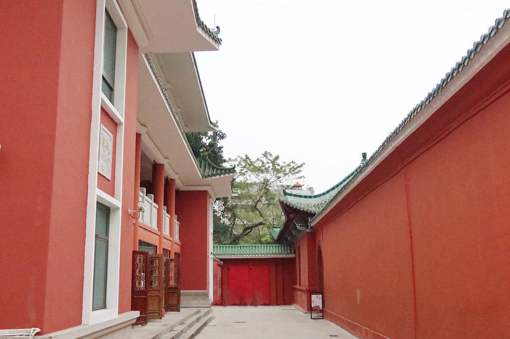 来到这里可以拍一组好看的照片,建筑颇有古典的故宫风,红墙绿瓦,树影斑驳。站在红墙下,随手都能拍出别具特色的照片,如果再穿上汉服来打卡那就更加完美啦。