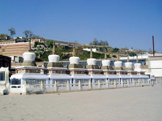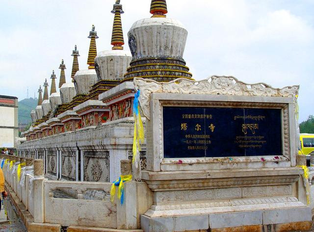 塔尔寺标志性的建筑就是进山门后的那八座白塔,而由中华人民共和国国务院于1961年3月4日公布的“全国重点文物保护单位”的纪念碑也立于白塔的一侧。