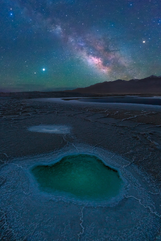 从格尔木出发到敦煌,途经翡翠湖,这天然形成的翡翠绿,皆是因为她丰富的含盐量,这里原本是大柴旦化工厂盐矿的采矿区,这片大小不一,形态各异的湖泊,均是历经多年的盐湖开采留下的坑洞,形成了如今美丽的翡翠湖,所以,她的颜色也各部相同,有绿色的、黄色的、蓝色的、白色的。在这里拍的照片总的来说我还是很满意的。