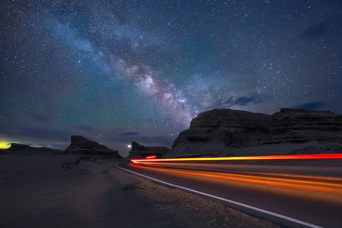 本来计划去西台乃吉尔湖,但因为时间关系要沿路返回格尔木,就没有去成,据说它是一个湖,中间有条路把它分成了两半,看上去也很美,去的人比东台乃吉尔湖还要少。晚上到了格尔木也是接近晚上10点,总的来说前两天的行程都比较赶。旅行小贴士:要是路线不和我们一样需要绕路去可可西里的小伙伴可以去到西台乃吉尔湖前面的冷湖镇住宿,但需要提前预定好房间,因为附件除了这里再无住宿,冷湖镇前面大约7-8公里不远就是黑山(黑山拍摄出来也非常震撼)第二天可以去俄博梁,随后由俄博梁去到敦煌,(下面有图具体可看)这样就可以不像我们去可可西里那样绕路。俄博梁是中国面积最大的雅丹地貌群——-柴达木雅丹地貌群的一部分。由于目前未进行大规模的旅游开发,使得这片神奇的区域保持着相对完整的原始状态,走入其间,宛如抵达到火星一般,被誉为是地球上最不像地球的地方。