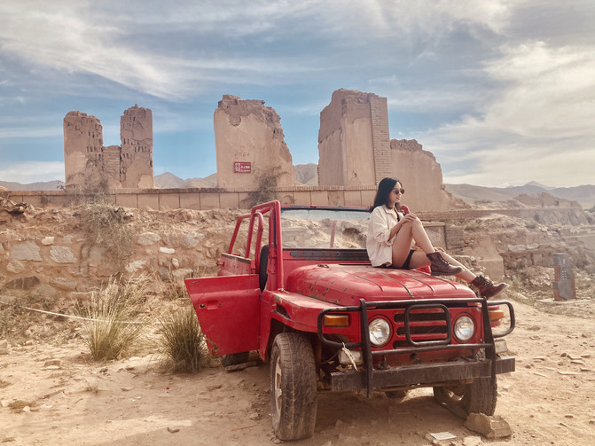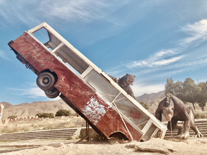第二站阿克塞石油小镇,石油小镇就是西风烈与九层妖塔的外景拍摄地---阿克塞石油小镇。很多人觉着这是一个虚构的场景或是人造的临时场地,但它却是真实存在的。石头雕塑可以不灭,但雕塑所代表的精神已不再有任何回响。在这里站久了不免让人发慌发憷。但确确实实是有人居住过的,幼儿园、学校、医院、政府机构等城镇基础设施一应俱全。这里曾经是中国工业的起点,建造了中国第一个军用核反应堆,曾经是中国造原子弹的地方,而现在他就是一片疑惑的废墟、一个神秘的鬼城。
