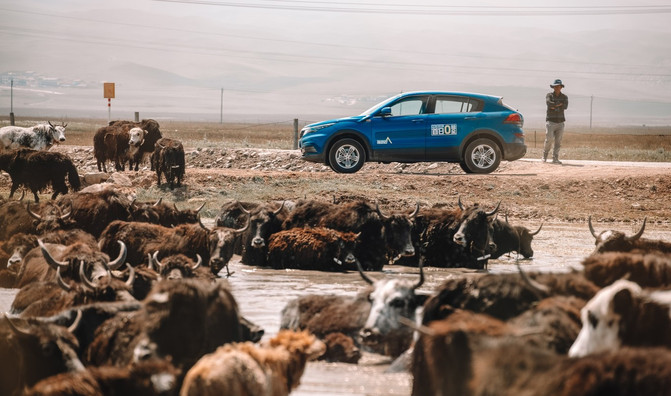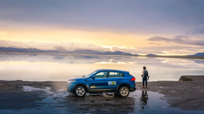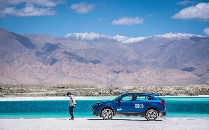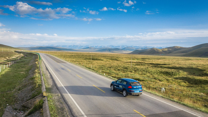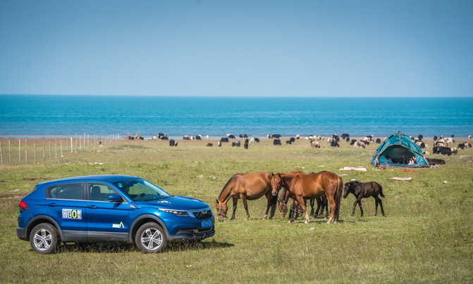 到了 西宁 站,按地图所示找到了我们的租的车,一台蓝色的SUV,颜值很高,在高原的阳光下熠熠生辉,让人格外兴奋,没有复杂的手续,手指简单的操作解锁,它就是承载我们快乐的远方了。