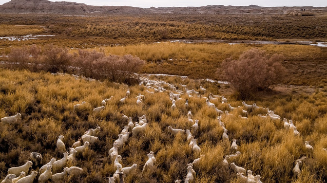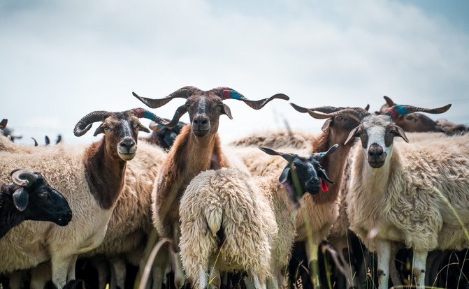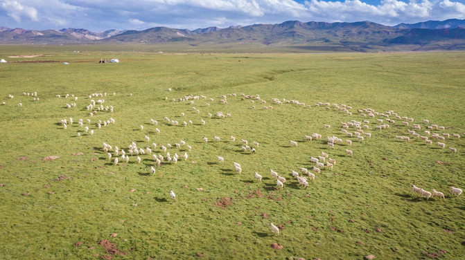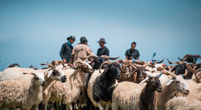 一群面无表情的羊,紧张的看着远处来的陌生人,也许它们能够猜测到自己接下来的命运了。