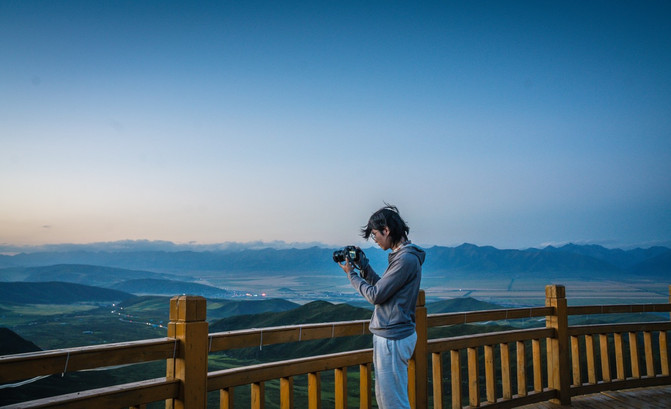 然后黑暗中引擎响起,一个藏族小伙骑着摩托对我笑着:“哥,看不看日出,拉你到湖边,十块”。