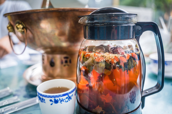 在 银川 ,当地人吃羊肉都有个习惯,要喝 八宝 茶,因为谈起回乡文化, 八宝 茶是必不可少的话题,八种配料一般有枸杞、桂圆、葡萄干、红枣、果干、冰糖、芝麻、茶叶等,每当有贵客来访, 八宝 茶就是款待之物,配上羊肉,还能达到提气、补虚、补血的作用。
