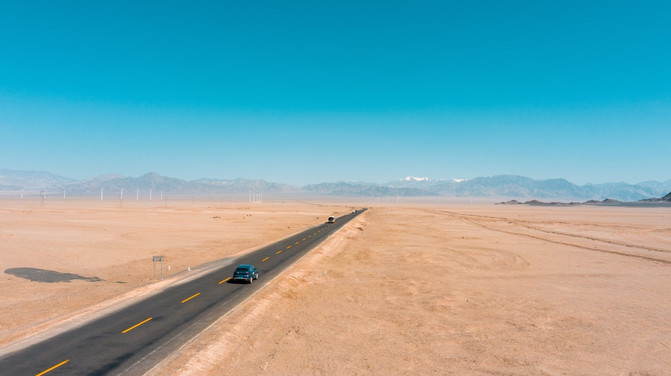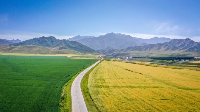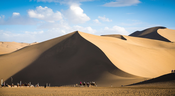 继续西行,翻越【 祁连山 脉】和【 阿尔金 山脉】相交的【当金山口】就来到了 中国 最大的【 塔克拉玛干沙漠 】东麓,沿着沙漠公路驶往的是【 敦煌 绿洲】,稍作停留折而向东,沿着 祁连山 脉的【凹陷戈壁】继续前行,到达 张掖 ,再一次翻越 祁连山 回到 西宁 ,跟随【 黄河 】的走向,来到【黄土高坡】上的金城 兰州 ,最后和【腾格里沙漠】擦边,在塞上 江南银川 以一杯葡萄美酒收尾。