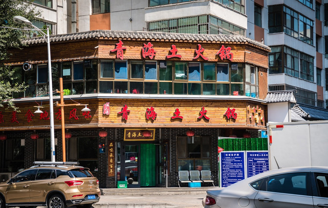 军马到位,还差粮草, 西宁 的民族特色的地方风味小吃颇多,如自然肥嫩的手抓羊肉、清凉爽滑的酸奶、酸辣可口的酿皮、筋道正好的牦牛肉,以及狗浇尿、尕面片、酥油糌粑、甜醅等等, 西宁 的当地朋友向我推荐的最具代表性的美食是位于饮马街的「 青海 土火锅」,距离 西宁 站大约2km。