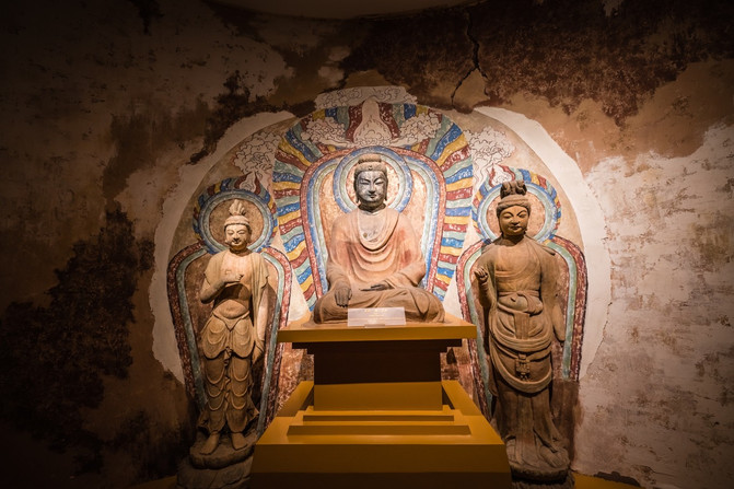 甘肃 佛教艺术展 是 甘肃 省博物馆从丰富的馆藏中精心挑选出的147件佛教文物,以时间为线索,分为“佛法东渐”、”胡风汉韵”、“盛世梵音”、“ 花落人间”、”花萼同辉”、” 敦煌 遗珍”六个单元,跨越十六国时期,至明清近1700年的历史,全方位展示了绚丽多姿的 甘肃 佛教文化