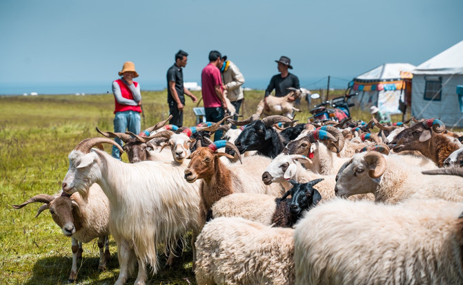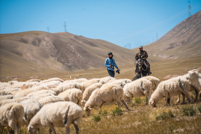 我们没有骑马去湖边的打算,反而对牧民的生活更感兴趣,聊了几句之后,他们就很热情的邀请我们坐下来了,正好这时候有羊贩子过来收羊,得到他们的同意之后,我们就自己随意拍了起来。
