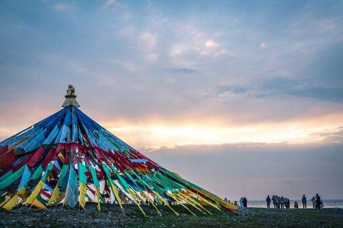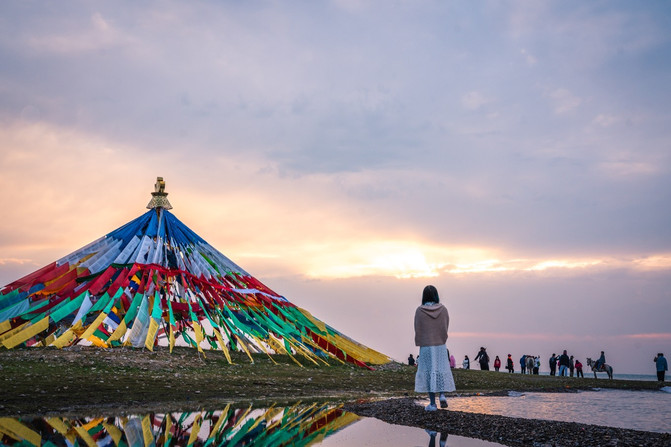 想要看 青海湖 的日出,就可以住在黑马河,这里是整个湖上最佳的日出拍摄点,白色的牦牛,漂亮的经幡,还有你想要的各种前景。