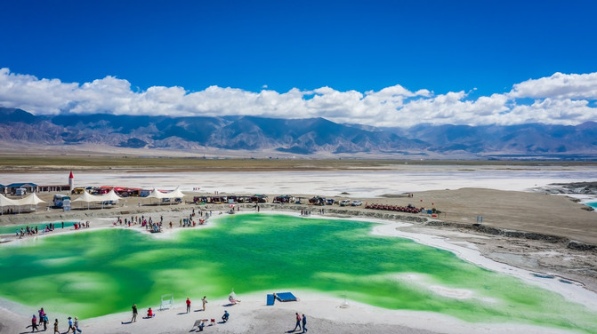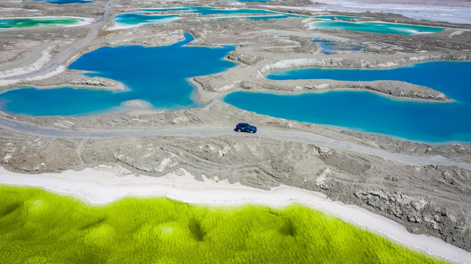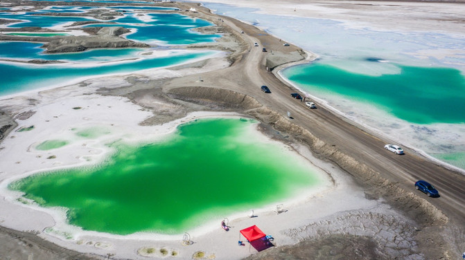 水往低处流,浩瀚的大海在盆地里日益蒸发就变成了现在的几个大盐湖,【 青海湖 】、【茶卡盐湖】、【翡翠湖】、【小柴旦】、【东西台】,我们一路所见皆是往日大海。