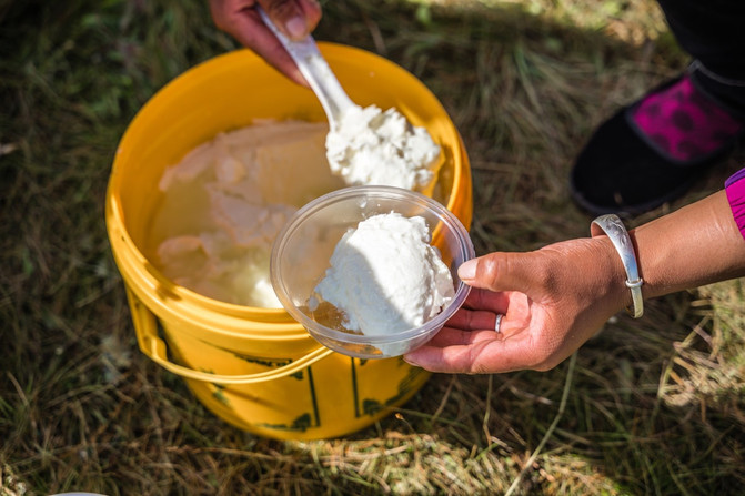 帐篷里还住着一个小弟弟,回车上拿了包零食给他,没想到阿妈看到了,就热情的把我们留了下来,从冰箱里端出一桶酸奶,给我和KEN一人乘了一大碗,加两勺白糖,那味 道真 的比什么超市里卖的 青海老酸奶都好吃。