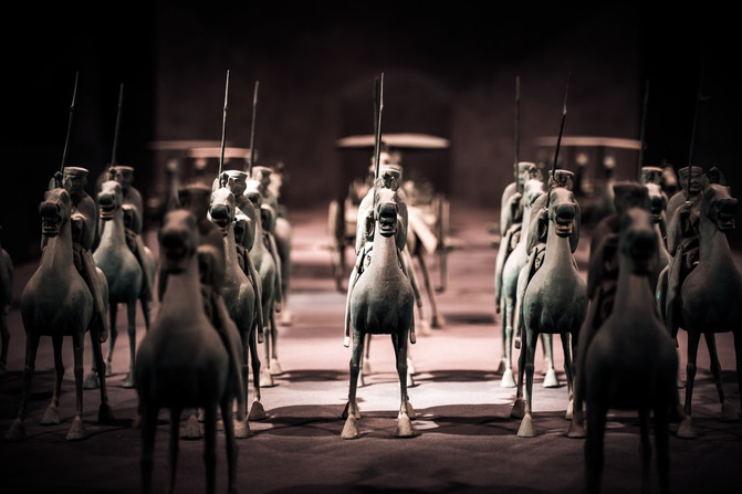 当然,整个丝路展馆中最为震撼的还是雷台汉墓中的这个车马仪仗队