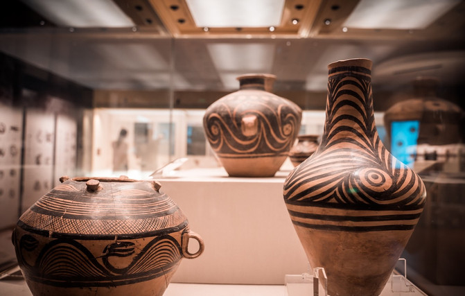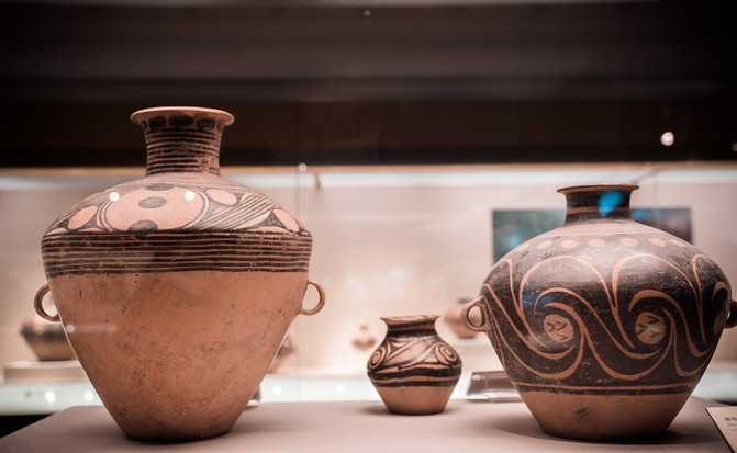 甘肃 彩陶从距今八千年的大地湾文化,经仰韶、马家窑到齐家、四坝、辛店、沙井,延续了五千多年的漫长岁月构成了一部辉煌灿烂的彩陶发展史。其中马家窑文化的彩陶从其数量、种类、制作水平与艺术成就,都是其他地区无可比拟的,达到了彩陶艺术的鼎盛时期。