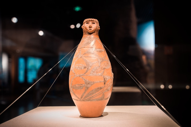 在大地湾遗址出土的上千件陶器中,塑有人像的彩陶瓶仅此一件,该器物也许和原始宗教祖先崇拜有关,或是母系氏族崇拜的“祖先神”。