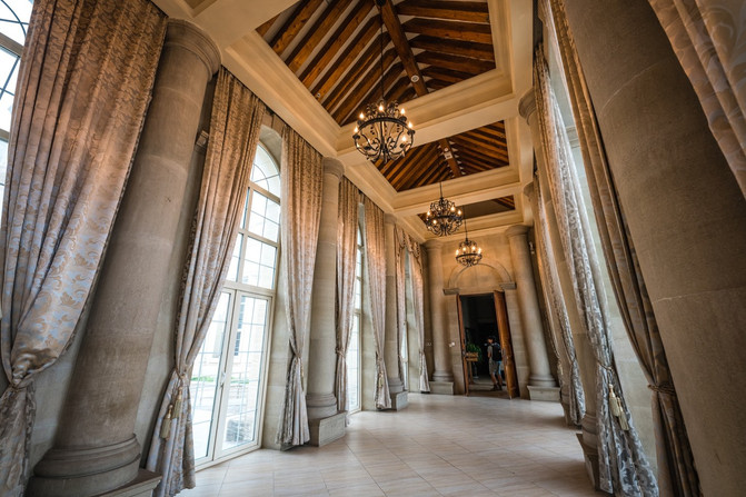 酒庄占地面积高达1300亩,所以你在地面上环顾四周是看不到酒庄的边界的。如果你从无人机视角往下看,会发现城堡就在园区的中央,被一大片绿油油的葡萄树包围着,加之地处城市郊区,没有多余的现代化建筑物在附近,遥远望去,犹如世外 桃源 一般。