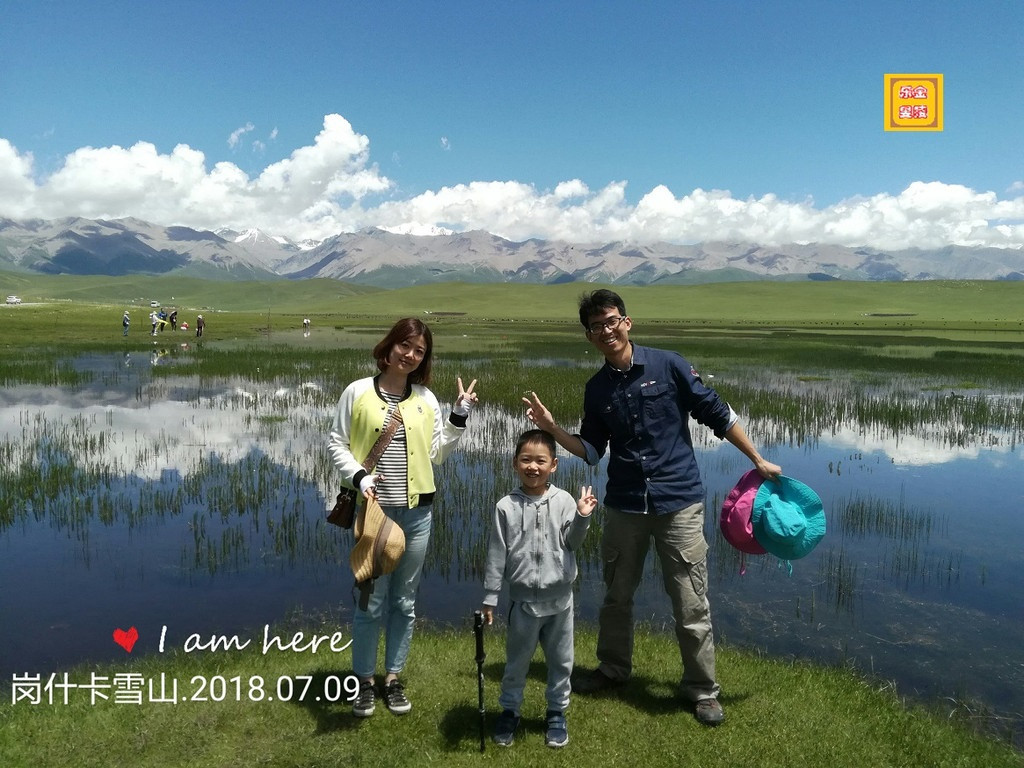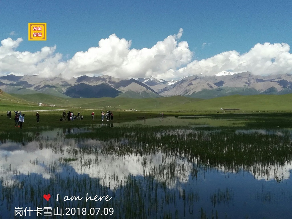 鸳鸯花海还是观赏岗什卡雪山的好地方,这里不但景色纯净湛蓝,一派天光圣洁,而且有水则灵,岗什卡雪山和蓝天白云被映衬在清澈的湖水里!大大增添了这个高原湖泊的层次和美感,也超出我们原先对他的想象哦!