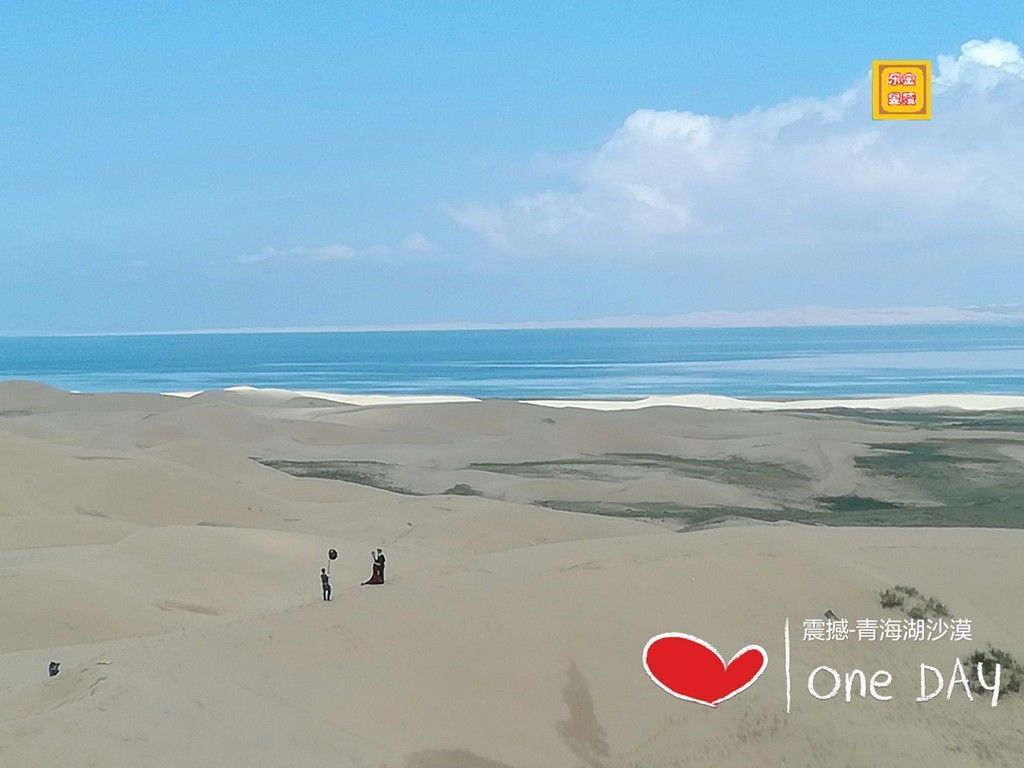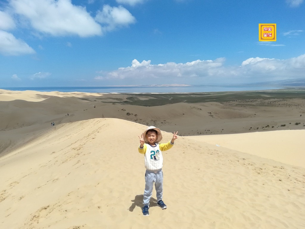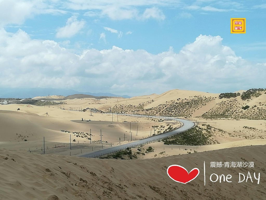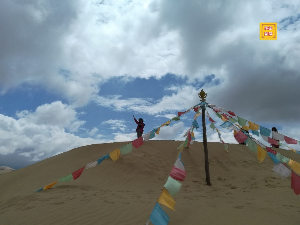 蓝天白云之下,沙丘上随风猎猎的经幡,不同的青海湖,不同的感受哦!