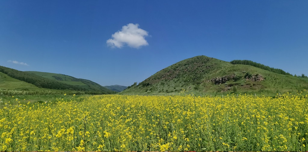这里是克斯克腾的桦木沟森林公园。它不属于乌兰布统景区,另收门票30元/人,被誉为摄影者的天堂,有著名的蛤蟆坝、线条山丘,夏季的油菜花开满山野,秋天金黄的桦木树或成片或星星点点散布在山水之间,可谓一步一景哦!