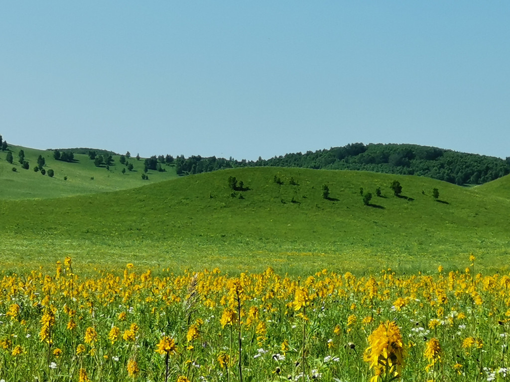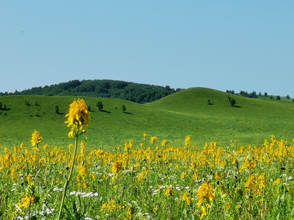 过了云山沙地向北,就进入了黄岗梁地界。这里是大兴安岭典型的稀树草原风光。仲夏的黄岗梁,蓝天白云,天高任鸟飞,气候爽爽的,草原静静的,花儿香香的!而且,木有门票,人们只要把车停在路边,就可以走到花丛中赏花、采花哦!