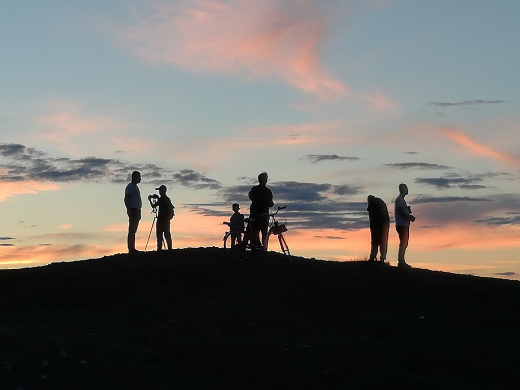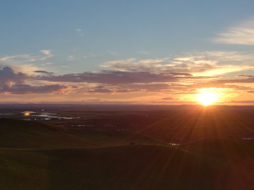 从湿地公园返回客运站,我们乘长途班车,18元/人,赶到大兴安岭的黑山头镇找好住宿,随即步行来到黑山头上看日落、这里早已架满了长枪短炮,人们都在期待着日落的那一刻。今天天气不错,日落应该没问题啰!