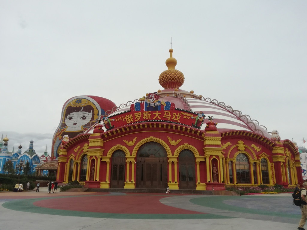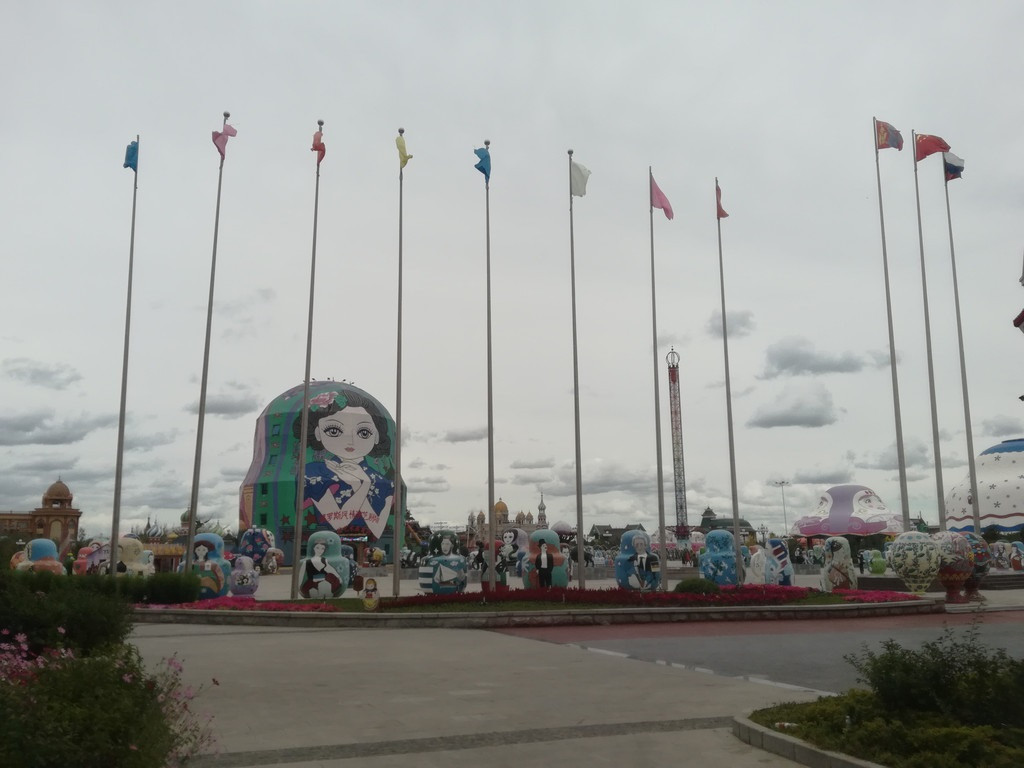 著名的满洲里套娃广场,原先免费的市民广场。现在,进去瞅瞅还要80大洋、看一场马戏竟高达230大洋。算了,远眺一下外观就行啦!这是我们从门缝里看到的套娃广场一隅。