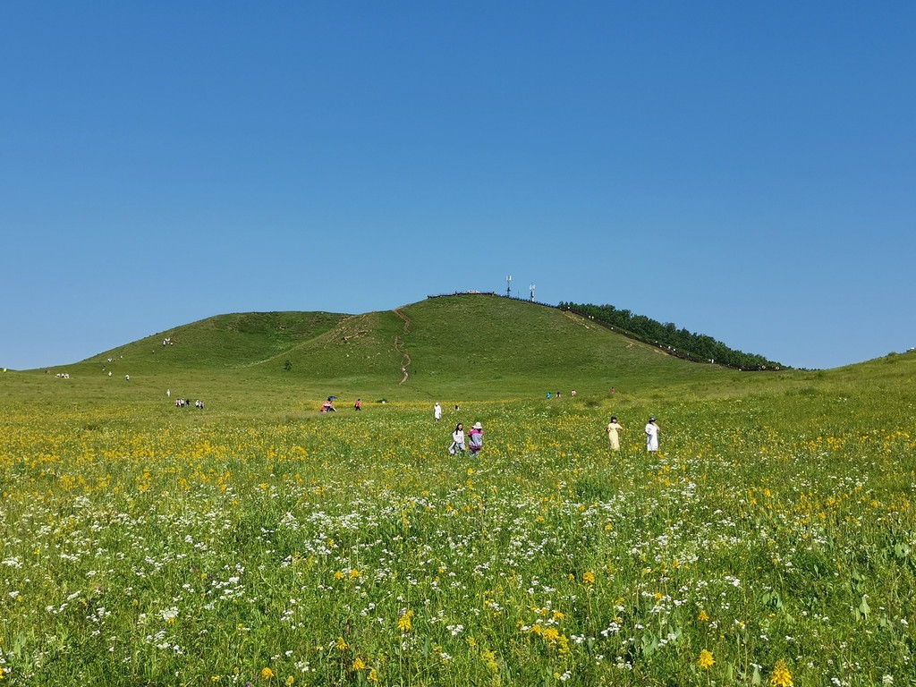 在黄岗梁,你会颠覆以往对大兴安岭的认知。其实,大兴安岭并不是绵绵的大山,而是巨大漫长的两面坡地,南坡在我国的内蒙古,北坡在我国的黑龙江连着俄罗斯。黄岗梁就是大兴安岭的最高处,它海拔2029米。也许,木有多少人知道,大兴安岭最高峰,会是一片鲜花盛开的大草原哦!