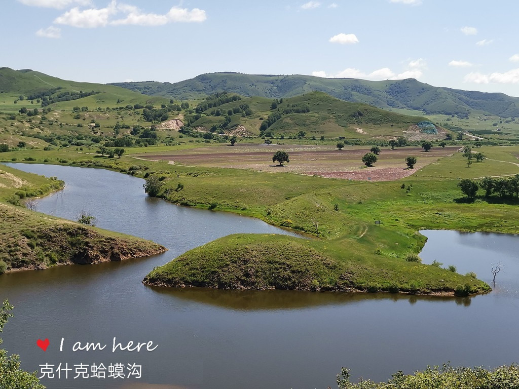 眼前就是著名的蛤蟆沟,因水中的这个半岛酷似蛤蟆而得名哦!