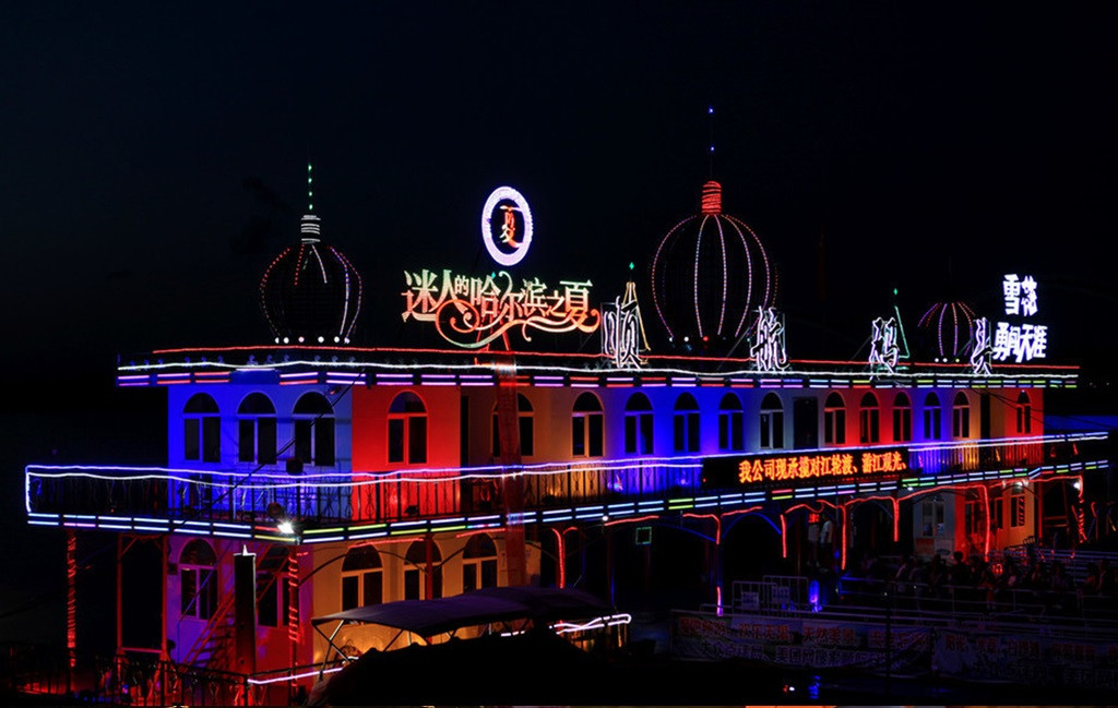 夏季的哈尔滨游客趋之如骛。傍晚的中央大街灯光璀璨,充满异国风情。防洪纪念塔广场上聚集着大量市民和游客。松花江边波光粼粼,如诗如画。人们在此自发地轻歌曼舞,吹拉弹唱,享受着松花江边清凉的晚风和美丽的江城之夜。