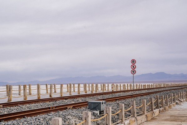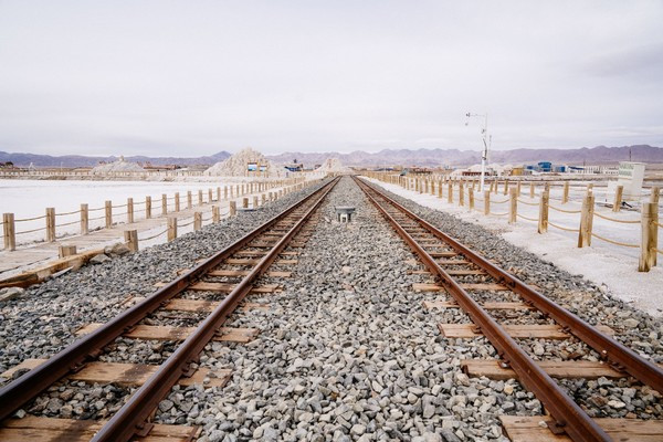 茶卡盐湖在晴天时湖水结晶度很高,可以看到洁白的盐湖上覆盖一层薄薄的卤水,景色和倒影清晰又纯净。湖中间有一条铁路延伸至湖内,起点处便是乘坐小火车的地方,可以乘车前往湖内深处,那里的景色更为纯净。