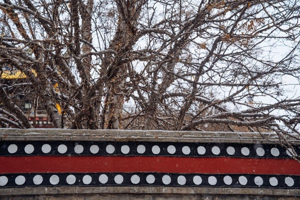 鹅毛大雪,在我们来到塔尔寺内就忽然而至了,轻飘飘的落在了寺院各处,不一会儿,菩提树的枝丫上就全是了。