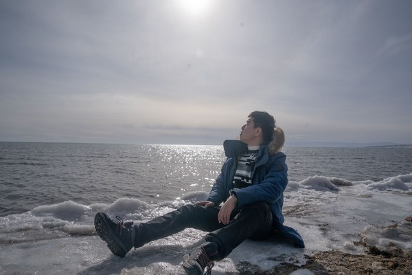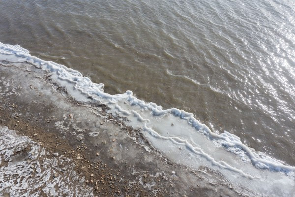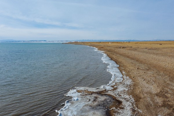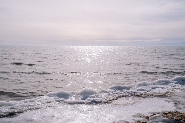 我们去的时候还没有全部结冰,但湖边已经出现了一条条白色的银线了。要是全湖冰封,那景色还得了?据说冰盖会破裂,湖面出现浮冰,在风力作用下,形成巨大的冰山飘至岸边,最大冰山体积约10立方米!
