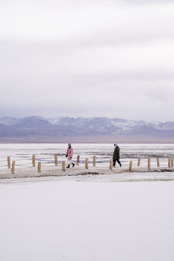 茶卡盐湖的冬天少了几分热情,多了几分冷艳