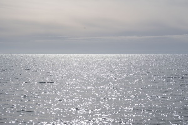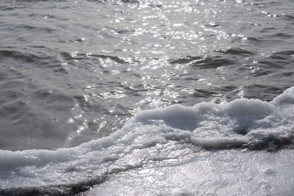 面对着太阳光,虽然呈现在眼前的是波光粼粼的模样,但风吹过来仍然寒冷