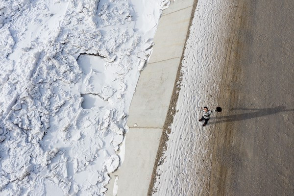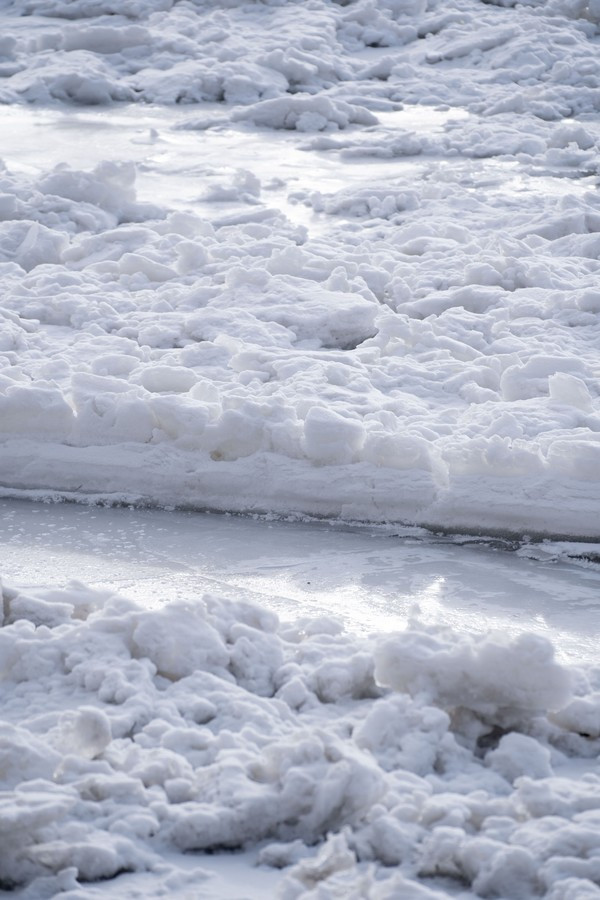 白花花的冰块,互相拥挤着冒出了水面,非常的壮观。