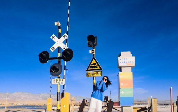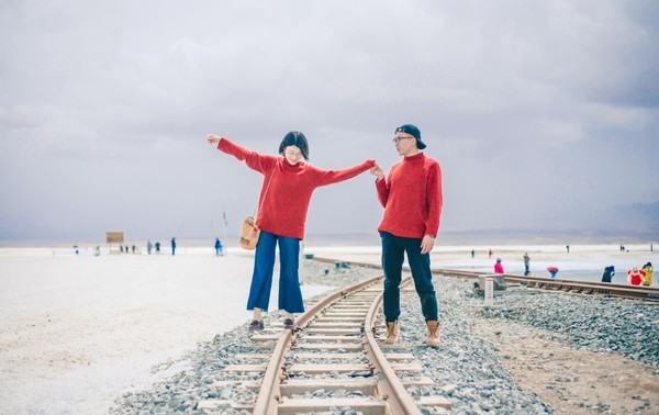 2、茶卡盐湖——倒影照、背影照、侧身照、小火车照、轨道照、红绿灯照