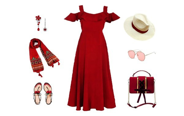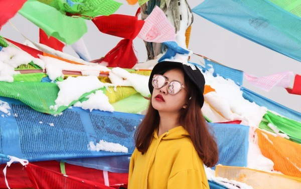 第二天:这一天的所有搭配都要和茶卡盐湖相配,选择鲜艳暖色系(红色、黄色、蓝色)