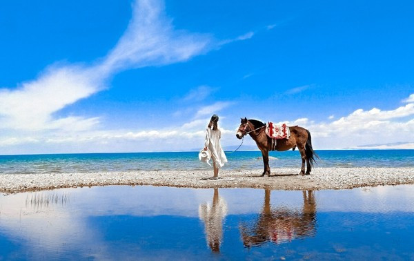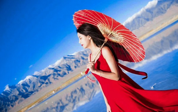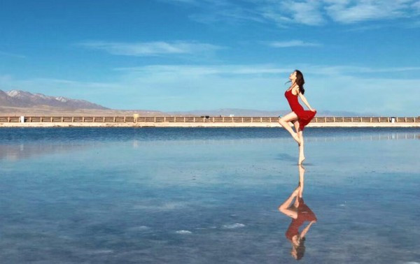 青海说起青海湖,还有一个盐湖很出名,那就是茶卡盐湖。人称茶卡盐湖为中国的“玻利维亚”,去不了玻利维亚,来茶卡盐湖一趟也是可以的。拍摄时可以带红丝巾、红裙子、红披肩等,配合白色的盐湖和蓝色天空,拍出来的照片会非常美。可以赤脚走到湖面上观看和拍摄自己的倒影,如果足够幸运,白天可以看到在这些河面上形成的海市蜃楼。若是连续几天阴雨,湖中的盐层可能会被稀释溶解掉,则会露出底下的泥地,不能下湖去玩。盐湖里很多小黑洞洞,其实是一个个的陷阱,千万别踩,而且越黑越危险。