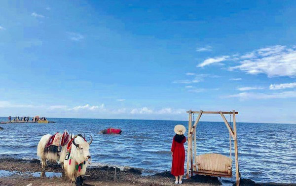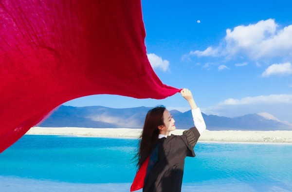 第一天:主要景点是青海湖,蓝似宝石的青海湖给它搭配一条白色或红色的裙子是最好看的,不仅如此,身着红、白色裙子徜徉在油菜花中也是最相宜的呢