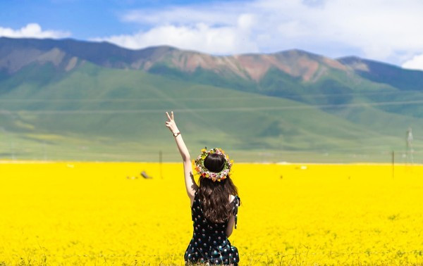 第六天:草原、油菜花、雪山,这是多姿多彩的一天,幻想一下,穿上粉色裙子搭上牛仔外套,再戴上编织帽或者发带,可以在草原上驰骋,在油菜花里流连,在雪地里徜徉