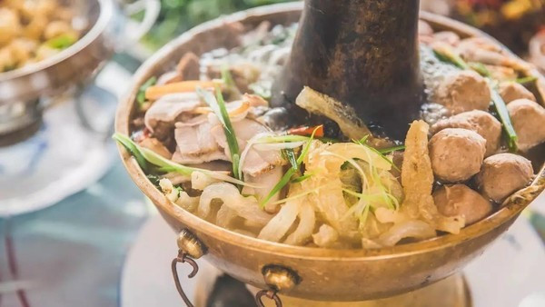 青海人把火锅称为“锅子”,青海土火锅的锅底一般由羊肉清汤加少许酸菜制成,口味偏重香辣,不加红油及过多调料,汤色清亮,滋味天然醇厚;尝一口,羊肉的鲜美与酸菜的爽口完美结合,令人齿颊留香,又绝无肥腻之感。
