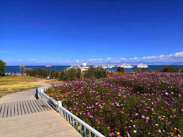 3、下午在 青海湖 边玩耍。你可以拍照、玩水、放风筝;累了就坐在湖边发发呆,让柔和的霞光铺满瞳孔,享受湖风亲昵的抚摸,聆听耳畔传来湖水拍打石块的哗啦声。