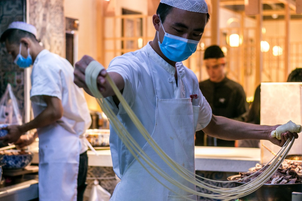 说到牛肉面当早餐,在我这个西安人看来是不可思议的,因为我们的早餐从不吃这个,但在西宁,一大早吃牛肉面也是蛮有趣的,大概是和兰州离的比较近的原因,牛肉面作为早餐食用,在西宁也是非常受大家欢迎,不仅仅有我们熟知的汤牛肉面,还有第一次见到的干拌牛肉面,而面在下锅前的时间可是非常讲究的,空气中停留多几秒这个面就不能再下锅了。终于知道一碗好吃的牛肉面是如何出炉的了。