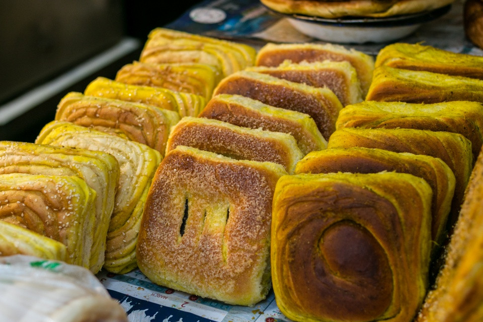 西宁的早餐文化很丰富,多为面食类。“包子粉汤,吃的稳当”我很喜欢当地人描述自己其中一样早餐(包子、牛肉粉丝汤)所说的这句话,吃的舒坦,也表达了西宁人很实在稳当的性格。在我熟悉的早餐中,我们一直都是包配稀饭,包子和粉汤的套餐组合还真是少见。包子多是胡萝卜、土豆、韭菜馅儿,还有我喜欢吃的造型独特的糖包。西宁最有代表性的早餐了,一定要品尝。