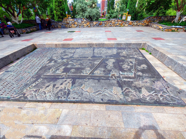 从这块碑记上,记者了解到,青唐城遗址公园是以南滩古城墙城南的一部分修建的,建于1034年。唐朝时,这里叫鄯城。安史之乱后,吐蕃从唐王朝手中夺回鄯城,由于城池四周苍山耸翠,故命名为青唐城。