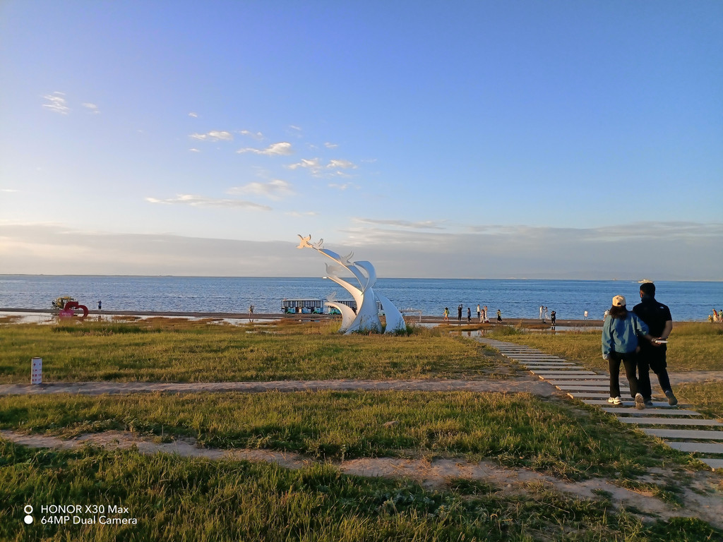 站在青海湖畔,远眺湖水,微波荡漾,湖水轻轻地揉搓着湖岸,落日余晖散射天际的残云,远处已飘起迷雾,山水相连处越来越模糊,鸟啼的声音视乎已经变弱了,似有似无。真是:“天高云波远山影,碧波荡漾青海湖”。一对对情侣牵手,面向湖边漫步,“爱意东升日落,浪漫致死不渝;想和你看看日落,只谈微风和晚霞;就在一次次日升月落里,在爱一次人间”。