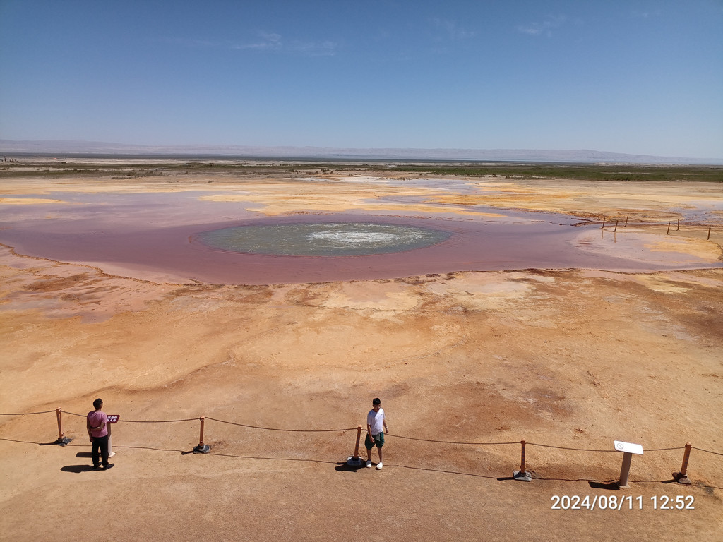茫崖市,有个很独特的景点,艾肯泉蒙古语称之“艾肯布拉格”,意为“源头泉”。艾肯泉有个突出的特点,泉眼位于平地之中,泉眼很大有约10米,周边都是平地,突然冒出个泉眼,水流不断喷涌,一年四季不断流,据说泉眼深度超过千米,泉水硫含量比较高,呈现红褐色,飞鸟野兽不敢靠近,泉水流经处寸草不生,水温常年保持在30℃左右。从空中俯瞰艾肯泉泉眼、喷涌出的泉水、周围深红色带状沉积物,组成了一个奇特的瞳孔造型,仿佛一只镶嵌在大地上的一只眼睛,俗称“大地之眼”,也有称为“恶魔之眼”。艾肯泉之所以被如此命名,是源于其在蒙古语里“艾肯”代表着可怕的意思。这眼泉水在周边村子人心中可怕存在的原因是,这泉水既不能饮用,也不能用来浸泡,周边一片荒芜,还经常能看到死去动物的尸体,不明真相的令人毛骨悚然。如今艾肯泉已开发为AAA级景区,在穿越柴达木盆地的旅行中,借机会休息一下,再到花土沟吃点全国各地的伙食是个不错的选择。