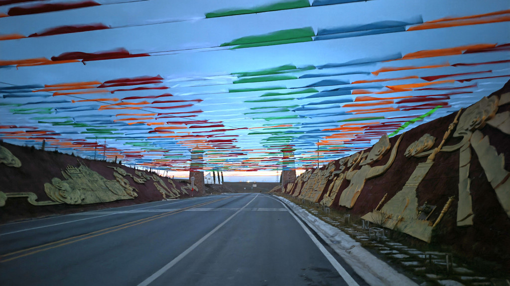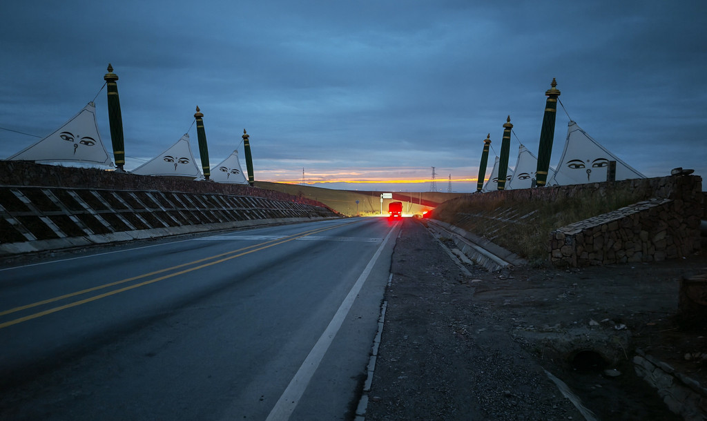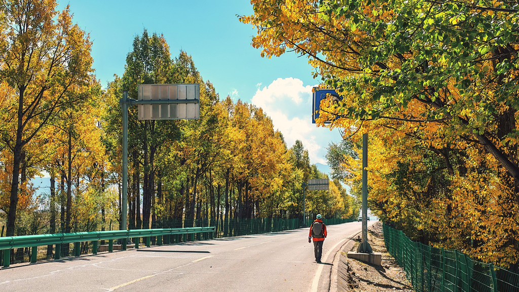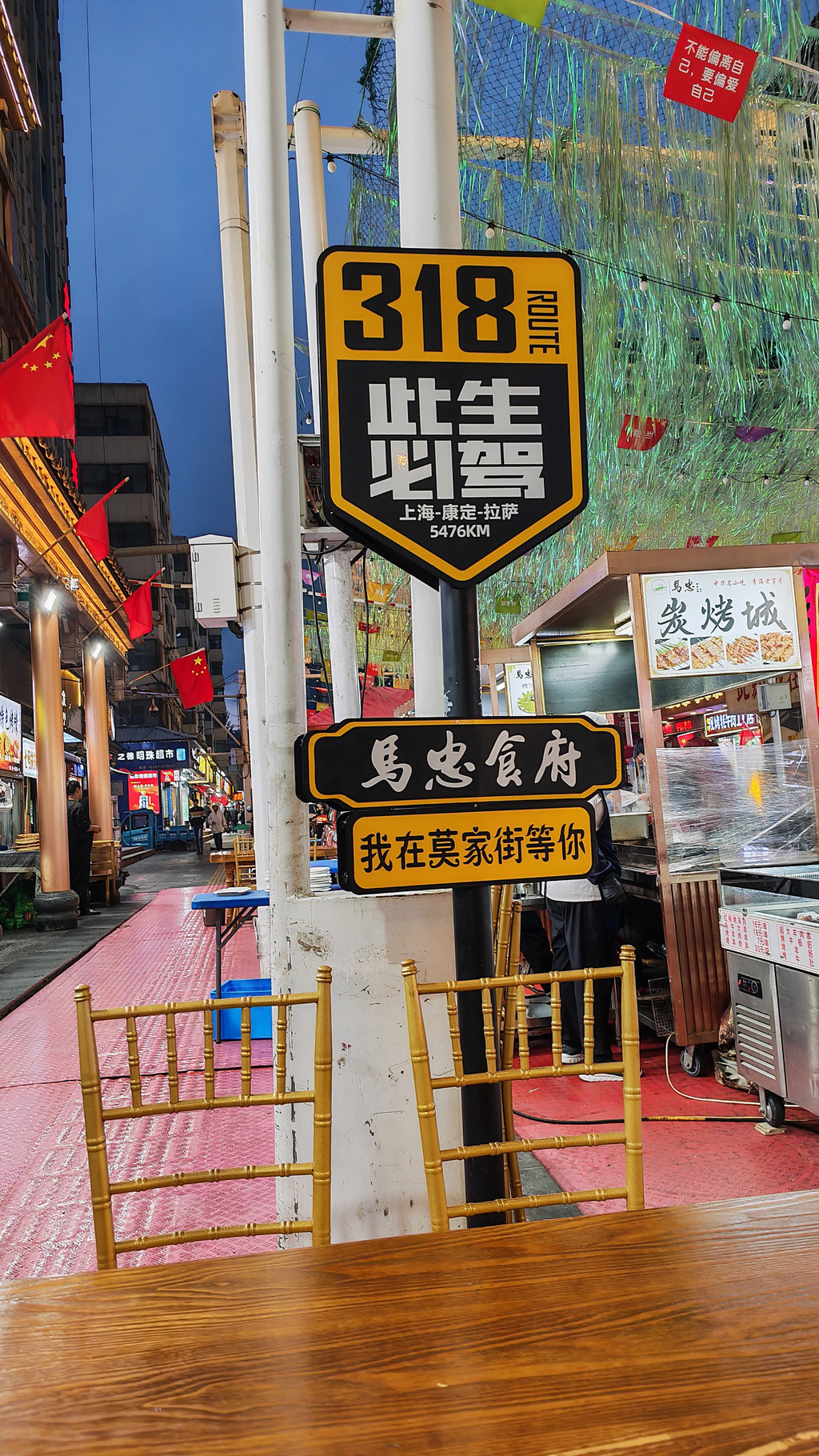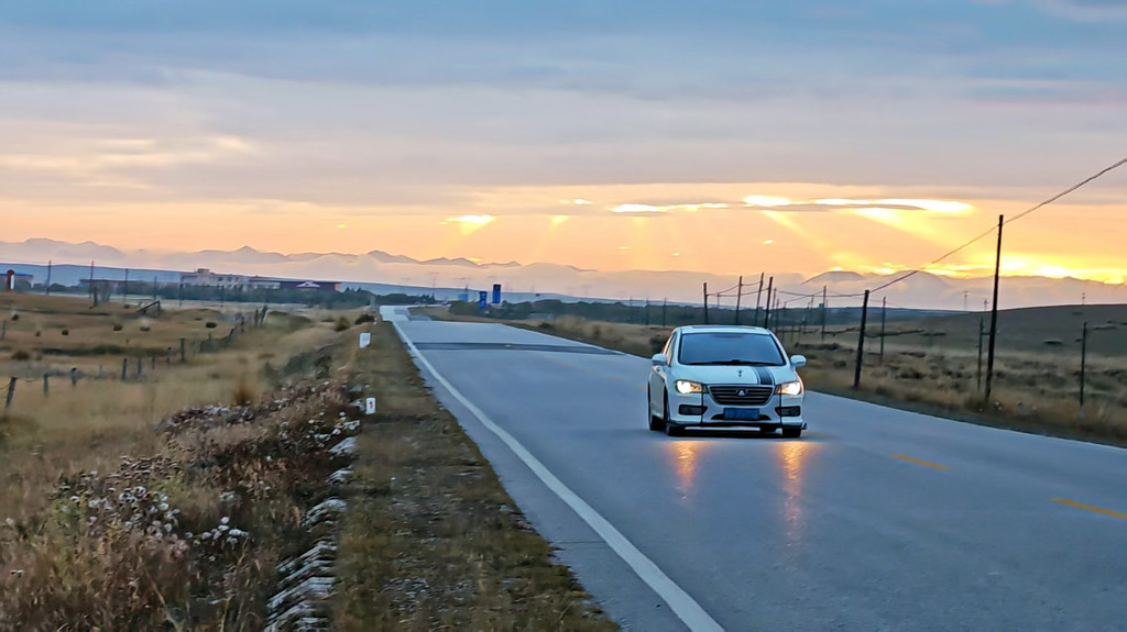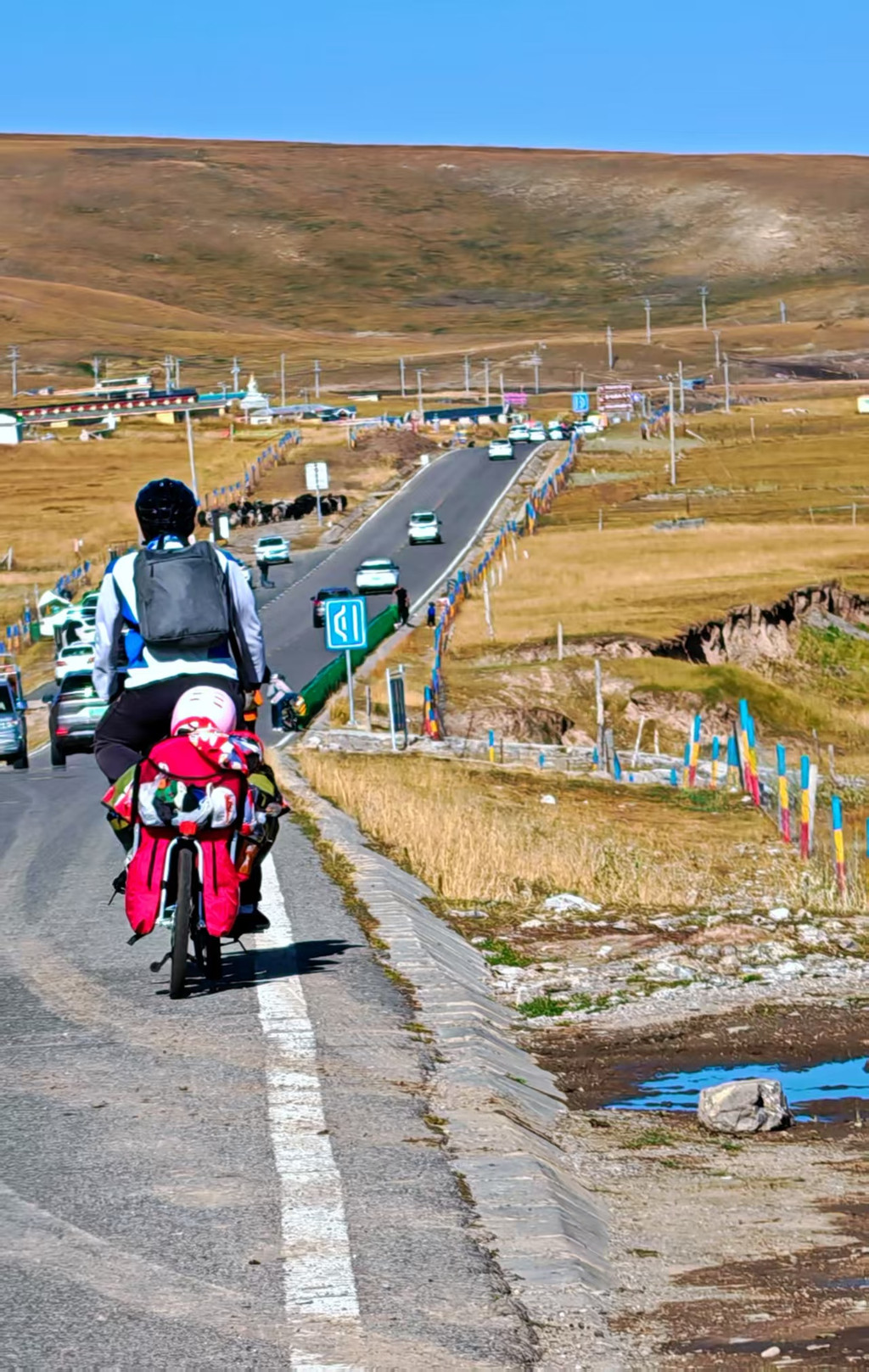 第八天(10月6):刚察-甘子河乡,全程47KM(245-292KM),用时12个半钟(6-18:30),全程走G315国道。刚察到甘子河乡途中有个哈尔盖镇(29KM处),在那里吃的午饭,期间查了一下发现甘子河竟然没有住宿地?怎么办?如果晚上走到甘子河无处可住如何是好?思前想后最后决定走到甘子河,返回哈尔盖住。找到酒店与老板商量。到甘子河接我们回来,第二天早上再把我们送回甘子河,老板挺爽快的答应了,加了40元。单程有十八九公里,挺合算的。于是我们放心走到甘子河加油站,结束当天行程,电话让酒店老板接回哈尔盖。行走途中遇到开警车的帽子叔叔,送我们两件带反光标志的绿马甲,提示我们注意安全。