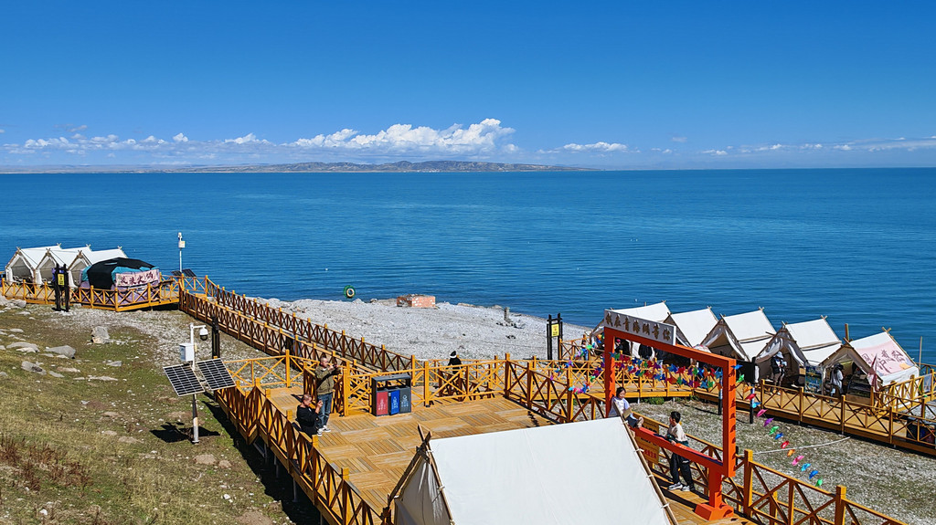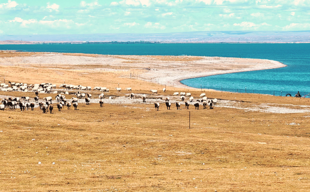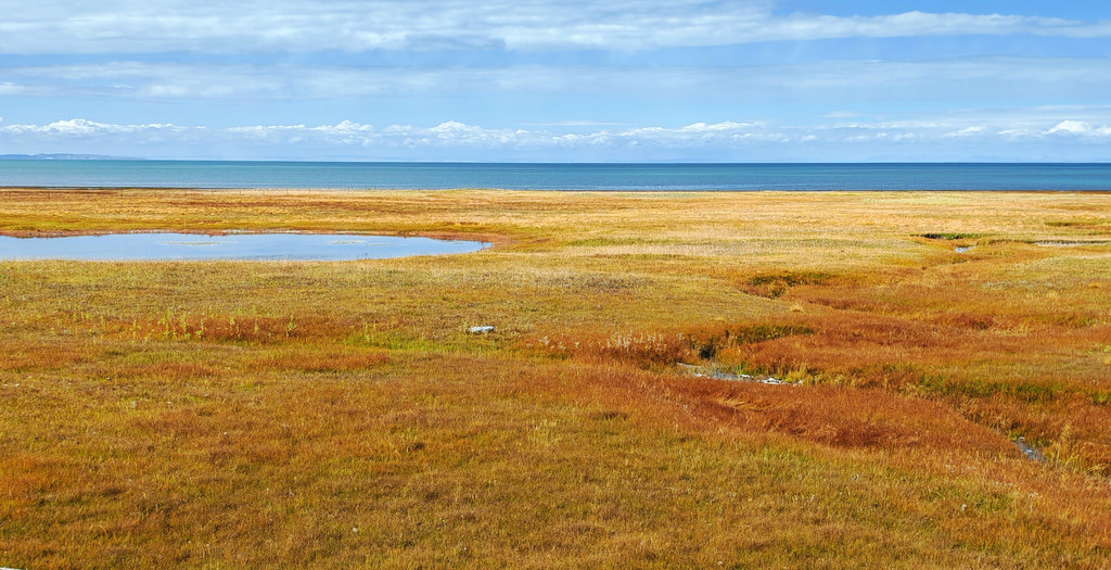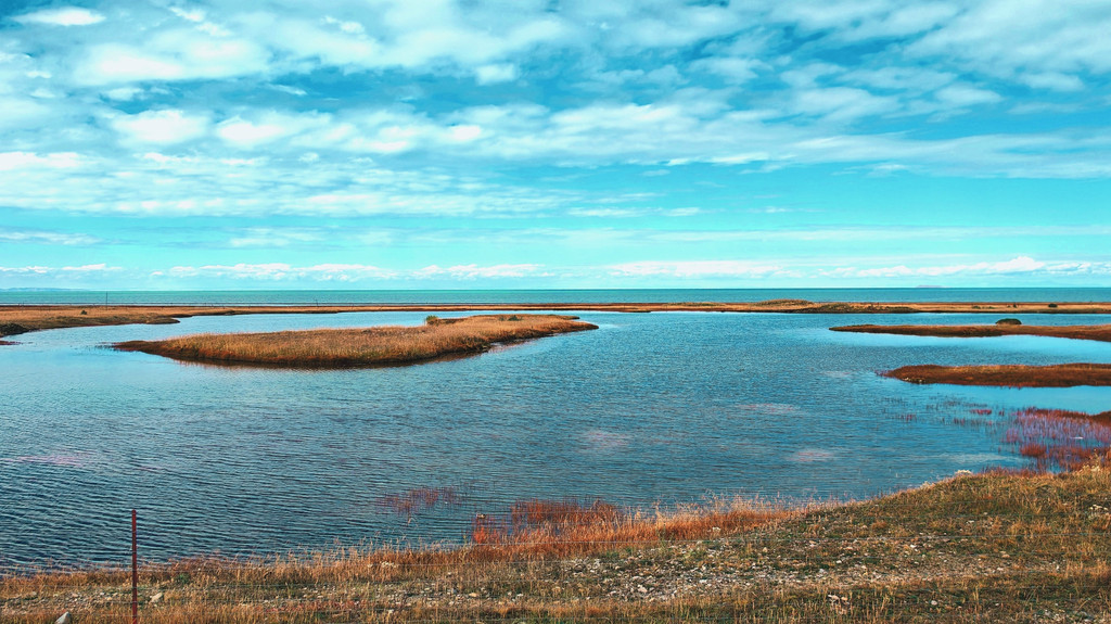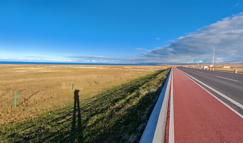 第五天(10月3):黑马河-石乃亥,40KM(122-162KM),用时11个半钟(6:30-18),从黑马河开始走环湖西路(S208)。昨天休整了一天,今天走的比较轻松,途中离黑马河约二三公里处是日之城观日景区,人不少,日出挺漂亮的。中午在东格尔景区(17KM处)吃饭休息,东格尔是青海湖观鸟观湖的景区,可以近距离接触湖面,除了自驾的骑行的,一般游客不会到这边来了。晚上天黑前到达石乃亥。